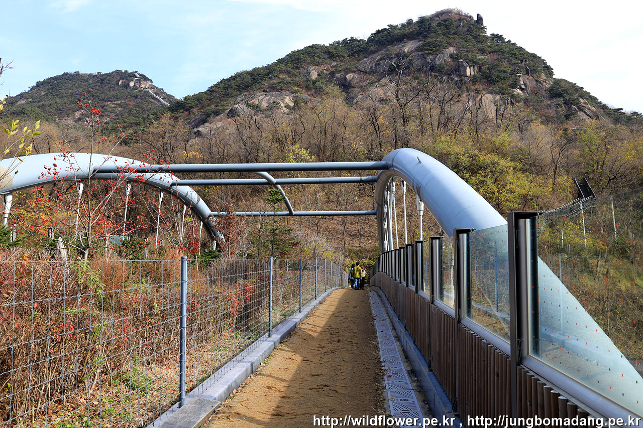 무악재 하늘다리로 이동하는 길 막바지 단풍과 함께 합니다.
