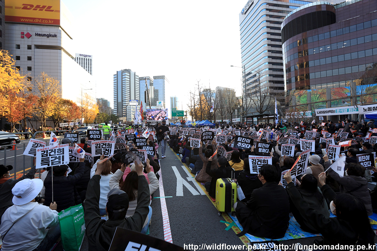 집회 진행할 때 평화로웠던 시간. 그 극우 일당들이 어디 짱박혔나 했더니 삼각지역에서 시끄럽게 세가지 구호만 스피커로 시끄럽게 반복하더군요.몇백명? 죄다 노인들이 힘이 없는 지 소리는 못내고 반대 피켓만 흔들고 계시는 데, 좀 불쌍하네요.