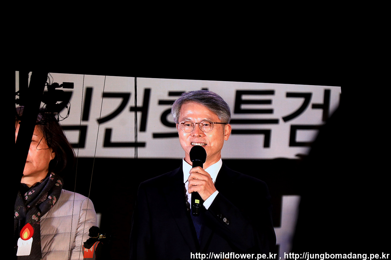 사전 집회가 끝나고 본집회에 안진걸 소장님이 나오셨습니다.