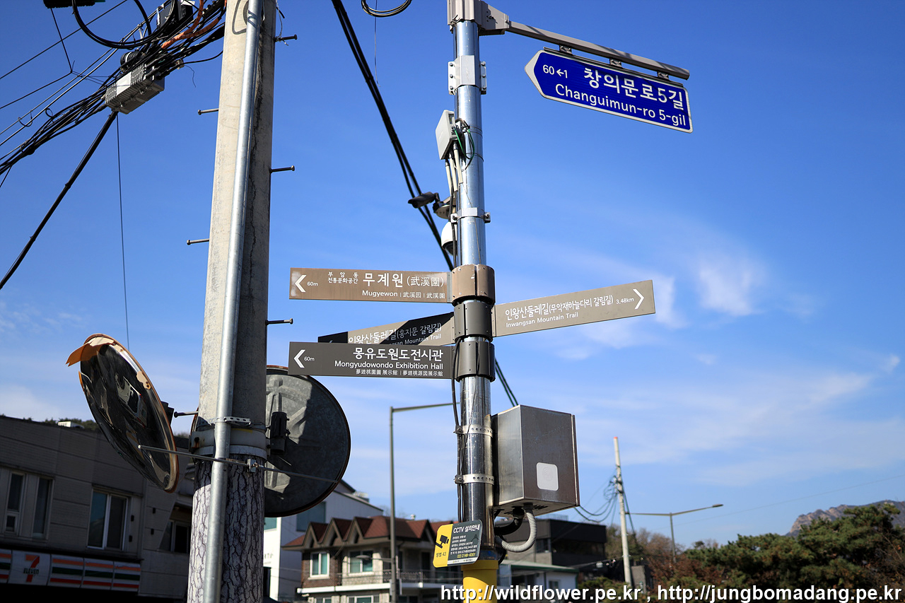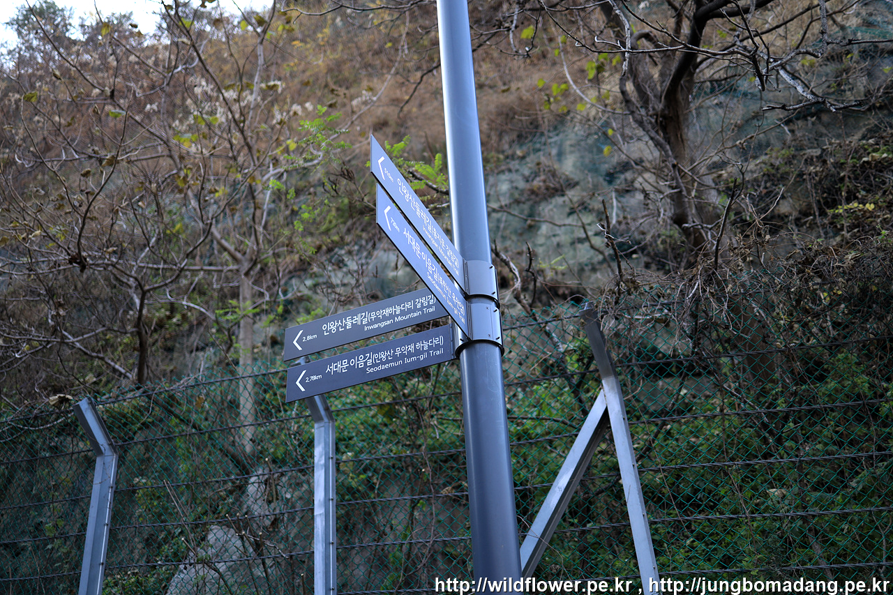 북악스카이웨이3교 아래로 지나 인왕산 둘레길을 찾아 가는 데, 잘 보이지 않길래 전봇대에 주렁 주렁 달린 이정표를 보니 다행히 가야할 길이 보이네요.