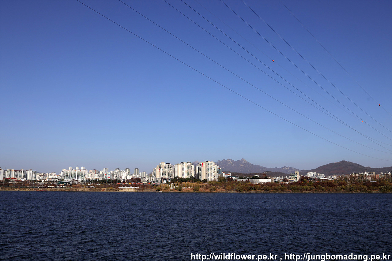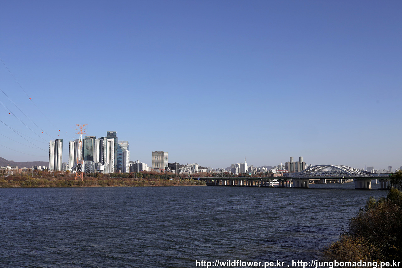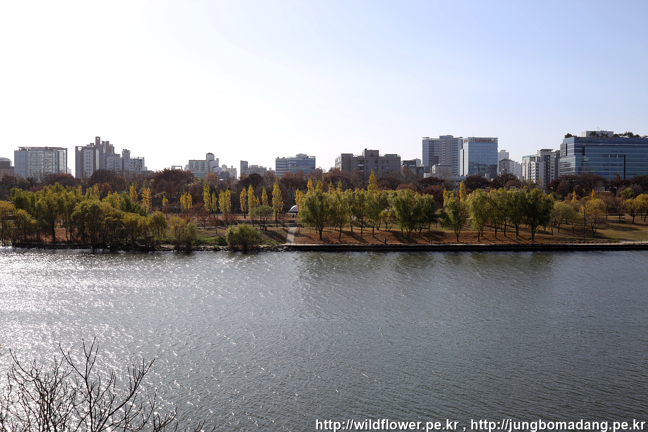 한강 건너편에 노란빛으로 늘씬한 나무들은 미루나