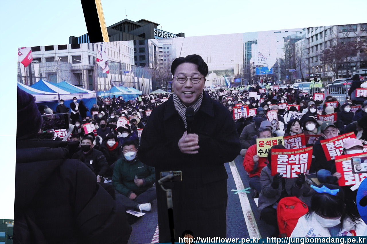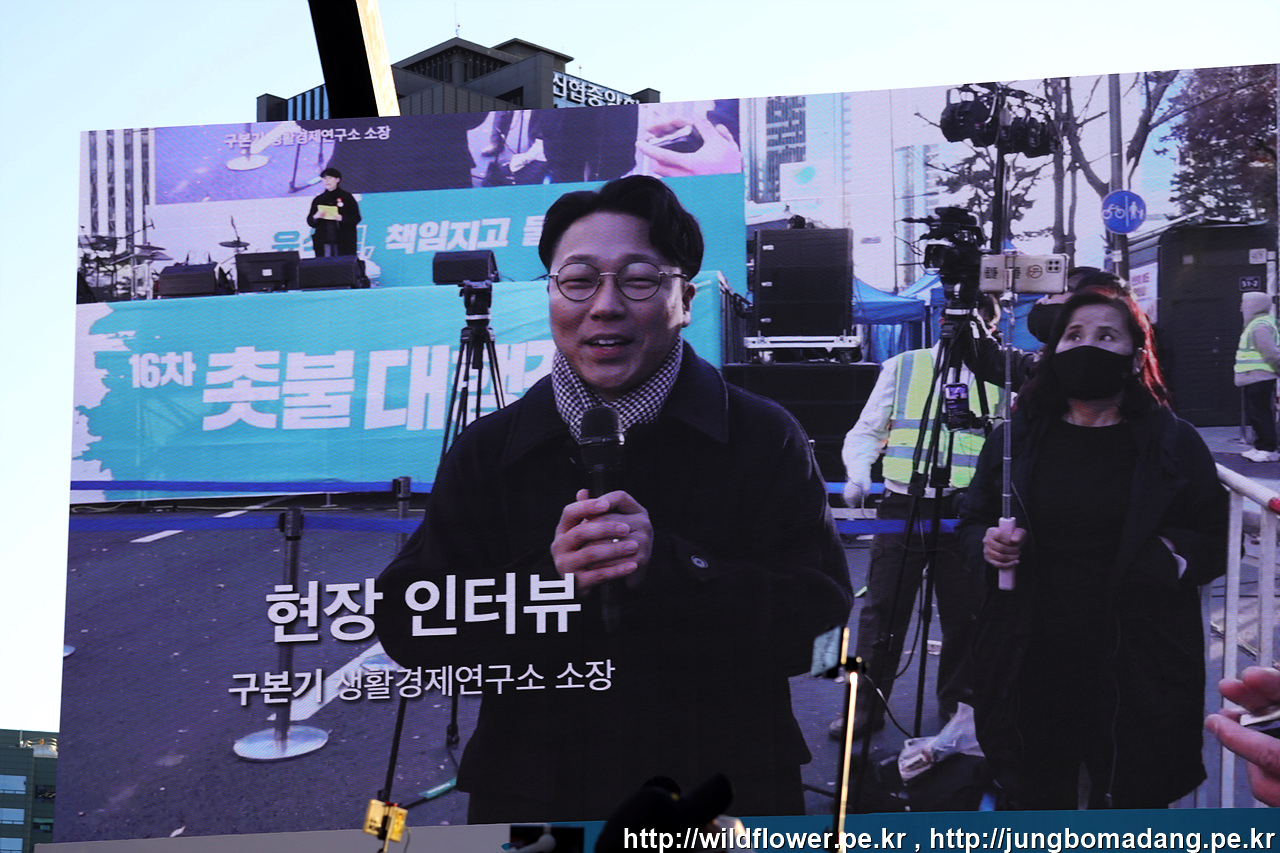 첨으로 무대에 올라 다른 기자님들 사이에 끼어서 추운 날씨에도 함께 해 주신 촛불 시민님들을 담아 봅니다.