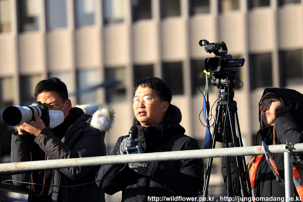 기자님들 촬영 시간입니다. 이번엔 다행히 무대가 규모가 있어 저도 한자리 잡고 망원 렌즈로 담아 봅니다. 추워서 장갑낀 손이 떨리는 것 부여잡고 셔터를 마구 눌러 봅니다.
