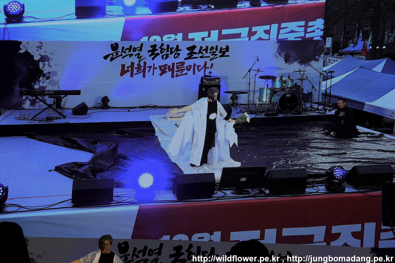 뱃노래 시간인 데, 중간에 신호에 맞춰 윤석열 현수막을 찢는 시간을 가져 봅니다.