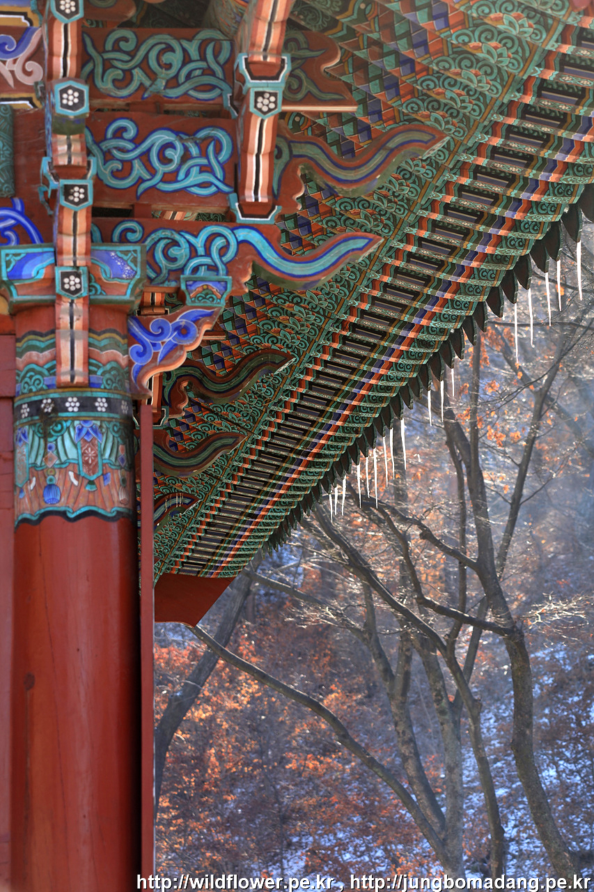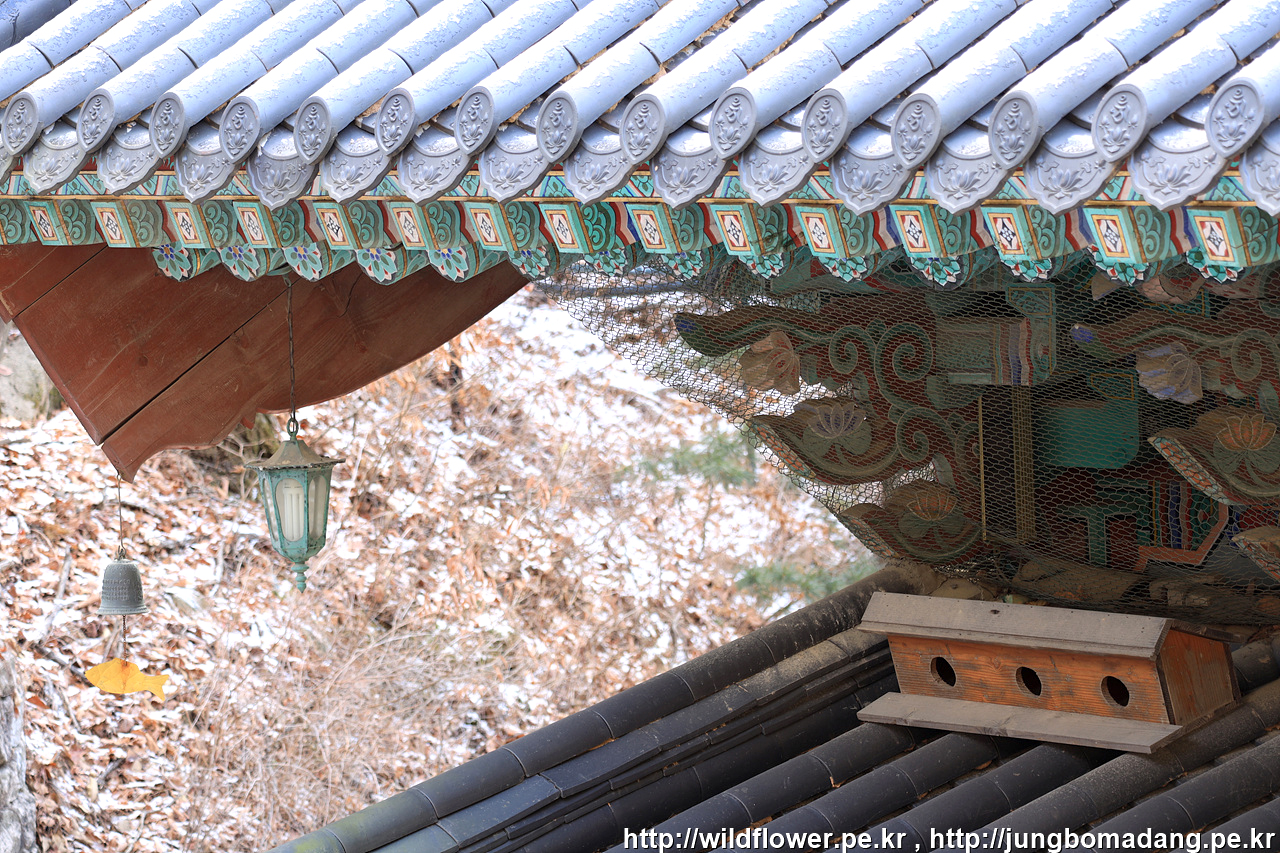 단청에 새들이 앉지 못하게 하는 대신 새집을 만들어 두었네요.