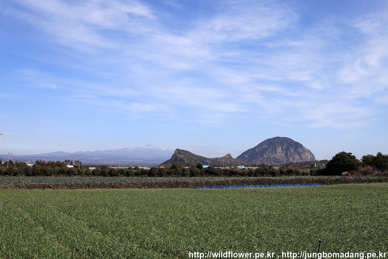 한라산(좌), 가시오름(중), 산방산(우), 모슬봉(우)