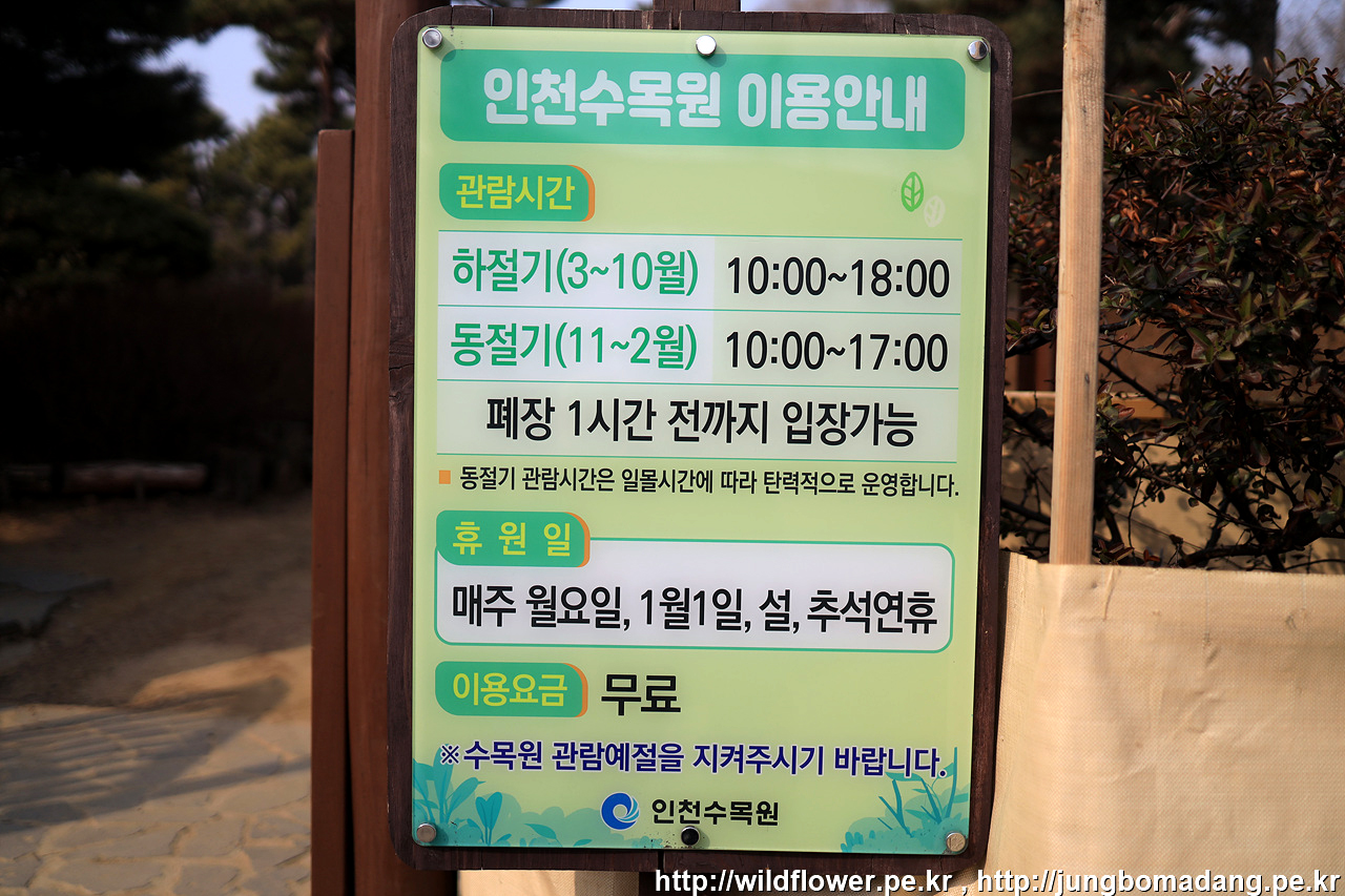 인천수목원에 도착합니다. 현재는 3월이므로 18시까지 이용 가능하고 17시까지 입장 되겠죠?