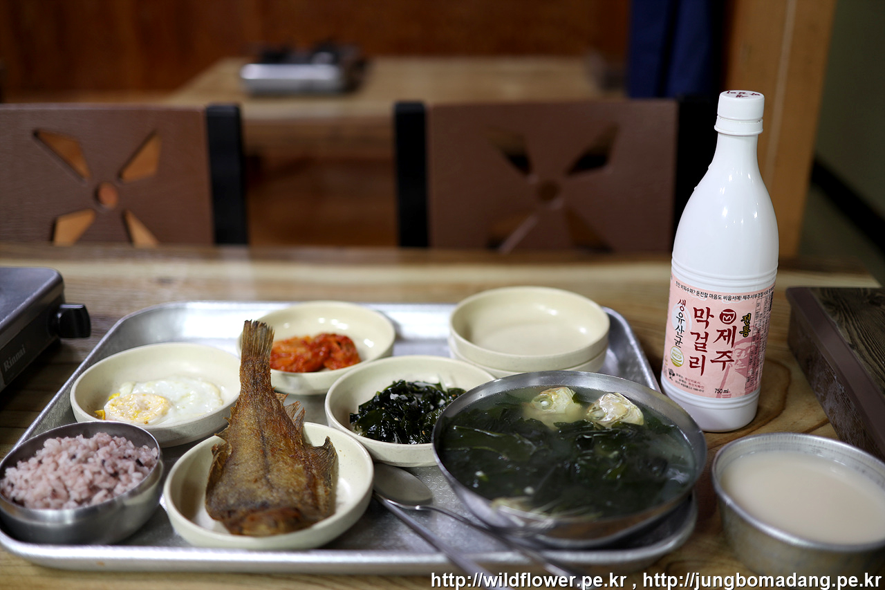 초록색 뚜껑의 제주막걸리 3병과 맥주 1병 구매하고, 나머지는 집에서 챙겨온 안주거리로 간단히 한잔하고 잡니다.
