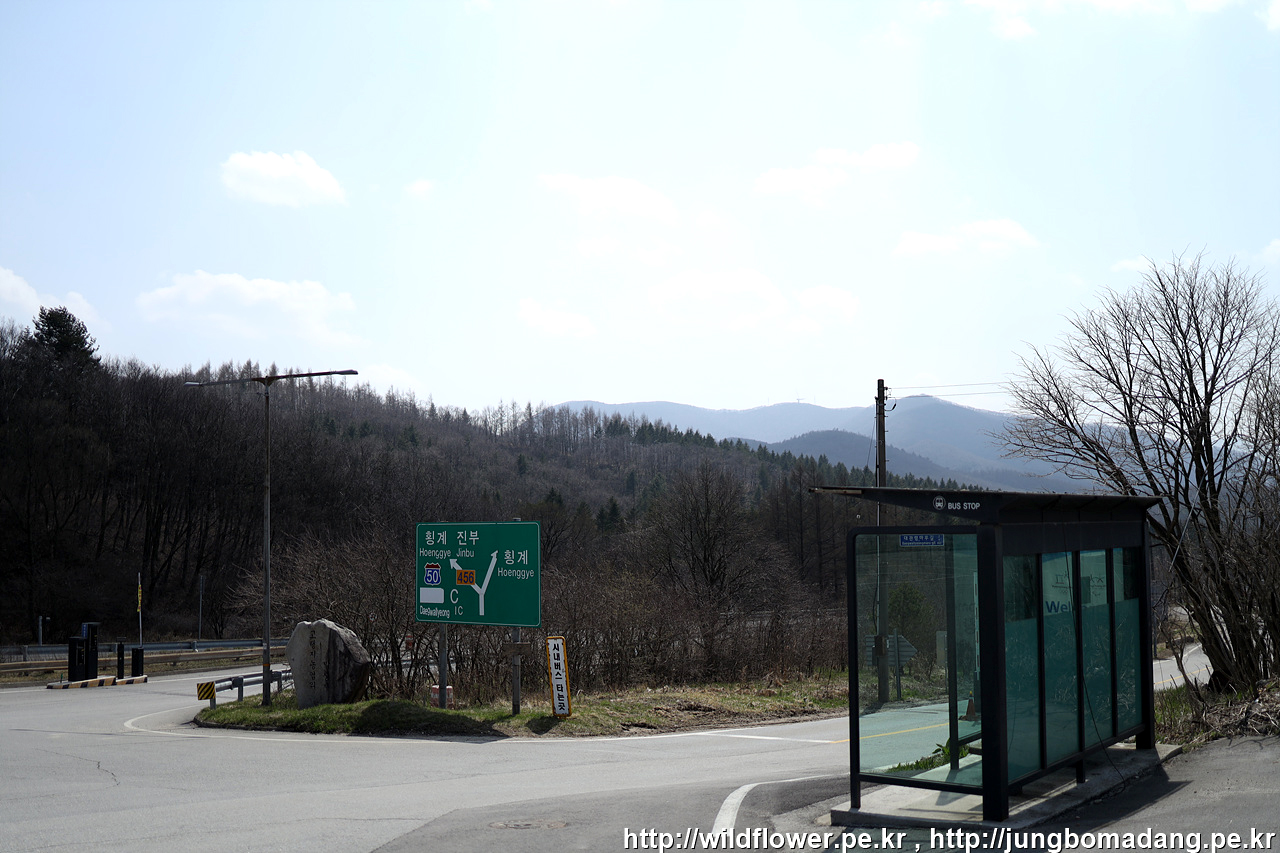 양뗴목장 버스 정류장 - 16시에 도착하여 16시 10분 횡계로 가는 막차 버스를 기다립니다.