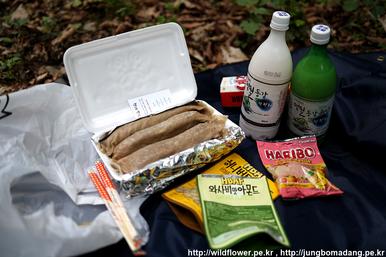 시장에서 전병 만원어치(6줄) 구매하고, 근처 하나로마트에서 좁쌀막걸리와 동강막걸리 하나씩 구매.