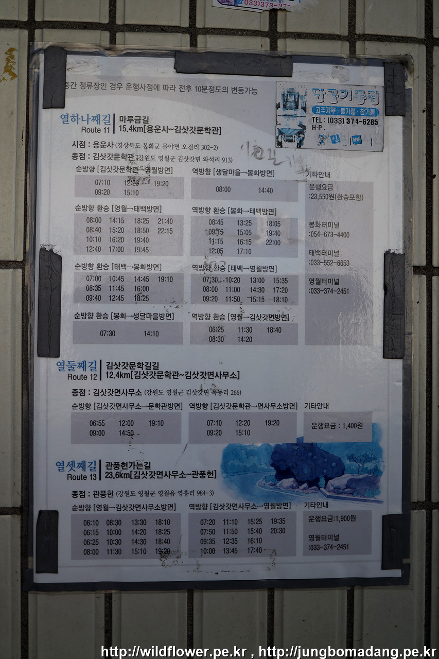 9시 20분에 영월시외버스터미널에 도착하여, 터미널에서 우선 시내버스 시간표와, 시외버스 시간표를 담아 둡니다.