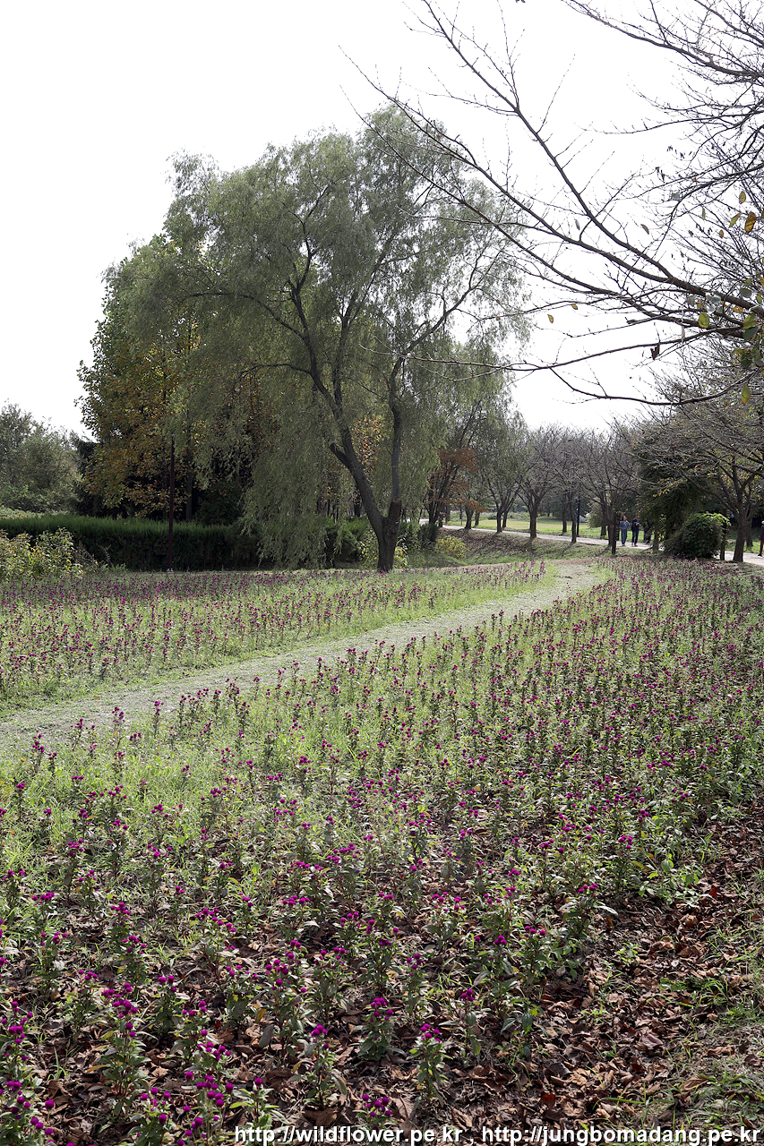 천일홍이 바닥에 펼쳐진 산책로
