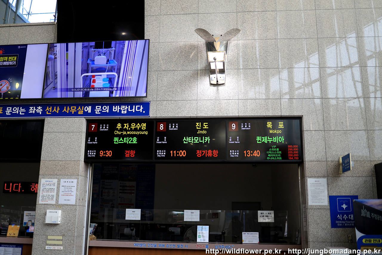 오전 7시 넘어 문자로 결항소식이 전달되어 믿을 수 없어 터미널에 갔지만 결과는 바뀌지 않습니다.