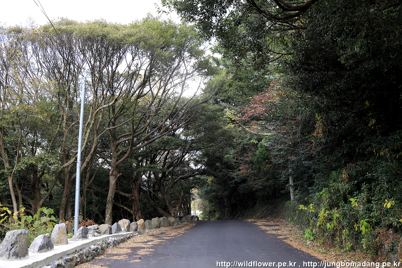 조금 가다 보니 동백 나무 아래 안내 리본이 달려 있네요.