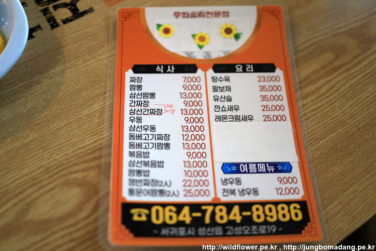 버스를 타고 성산으로 향합니다. 점심을 먹기 위해 들린 곳. 간짜장 2인 이상. 그래서 짜장 곱배기를 주문했습니다. 여긴 곱배기 2천원 더 받네요!!