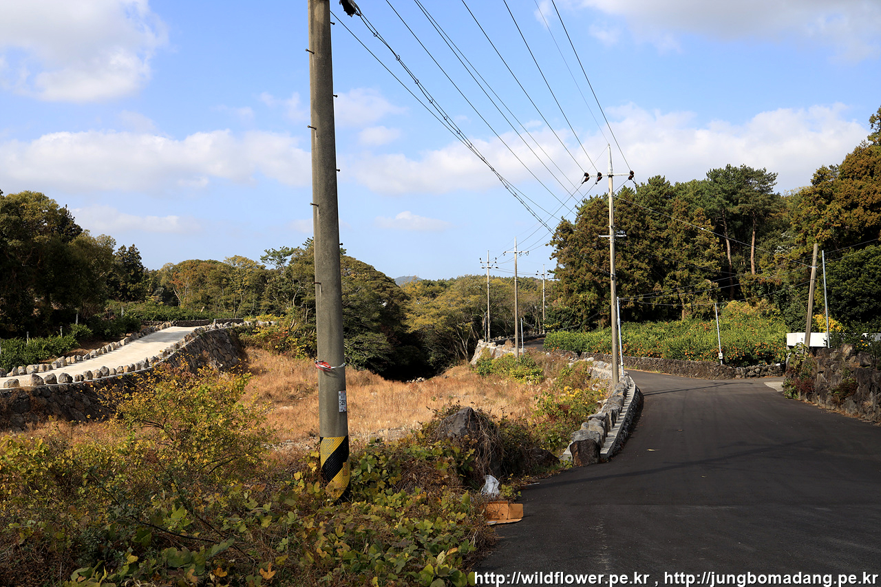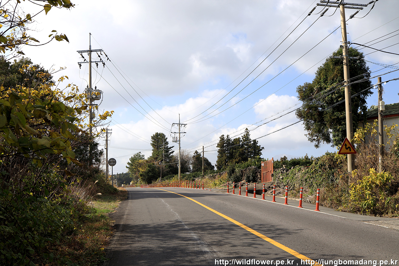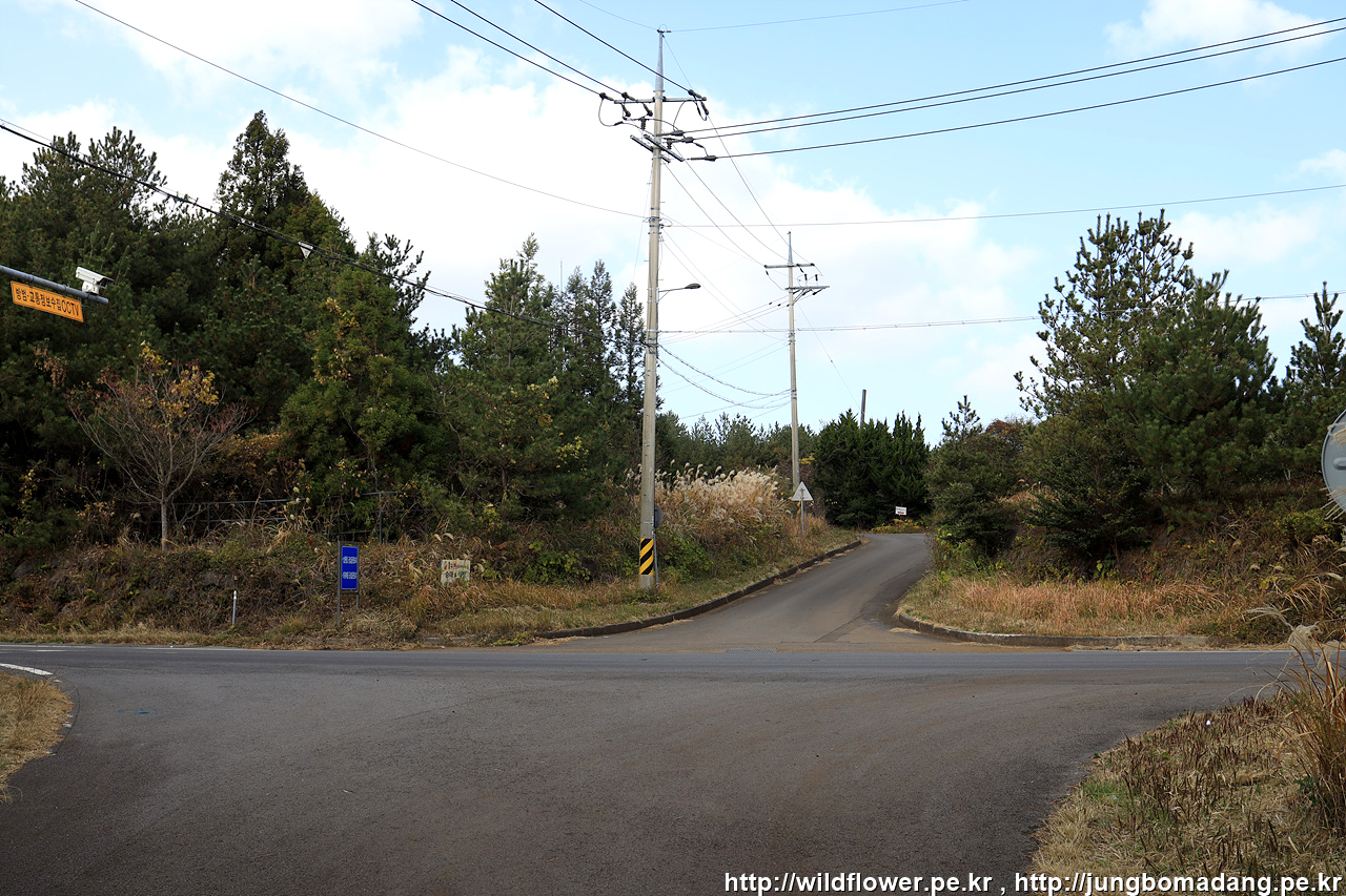 현의합장묘를 들려 다시 원래 민오름 주둔소 가는 길 4Km 이정표에서 민오름 주둔소쪽으로 가는 길... 도로에 차들이 쌩쌩 달리니 조심히 건넙니다.