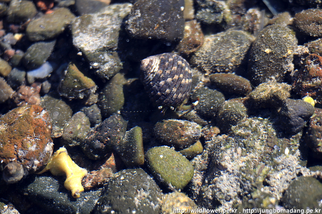 보말고 안에 소라게 하나 보입니다.