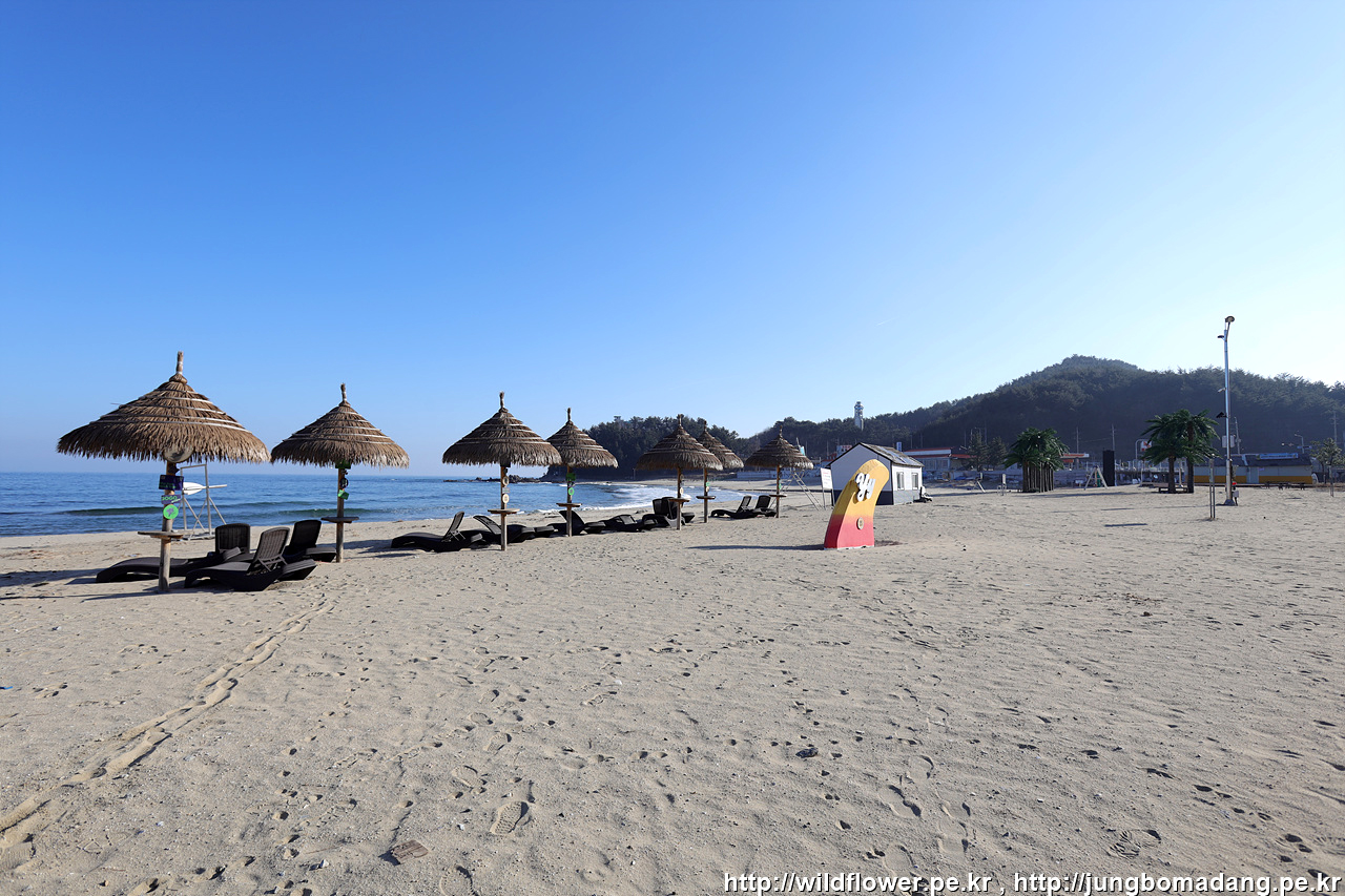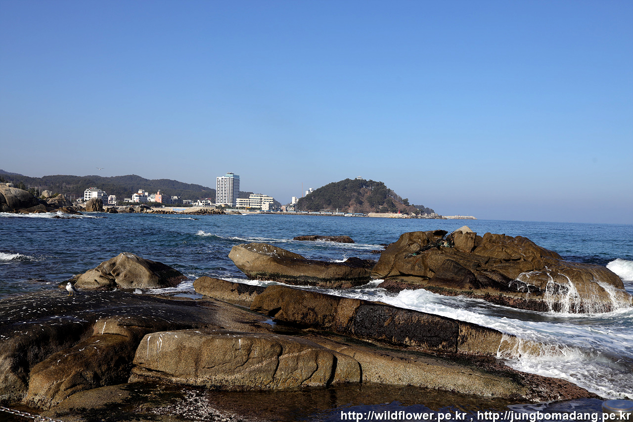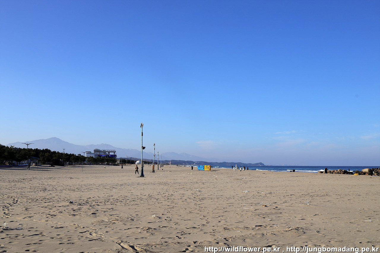 해변 뒤로 좌측에 설악산도 보이고, 우측에 보이는 곳은 큰 건물들은 속초겠죠?
