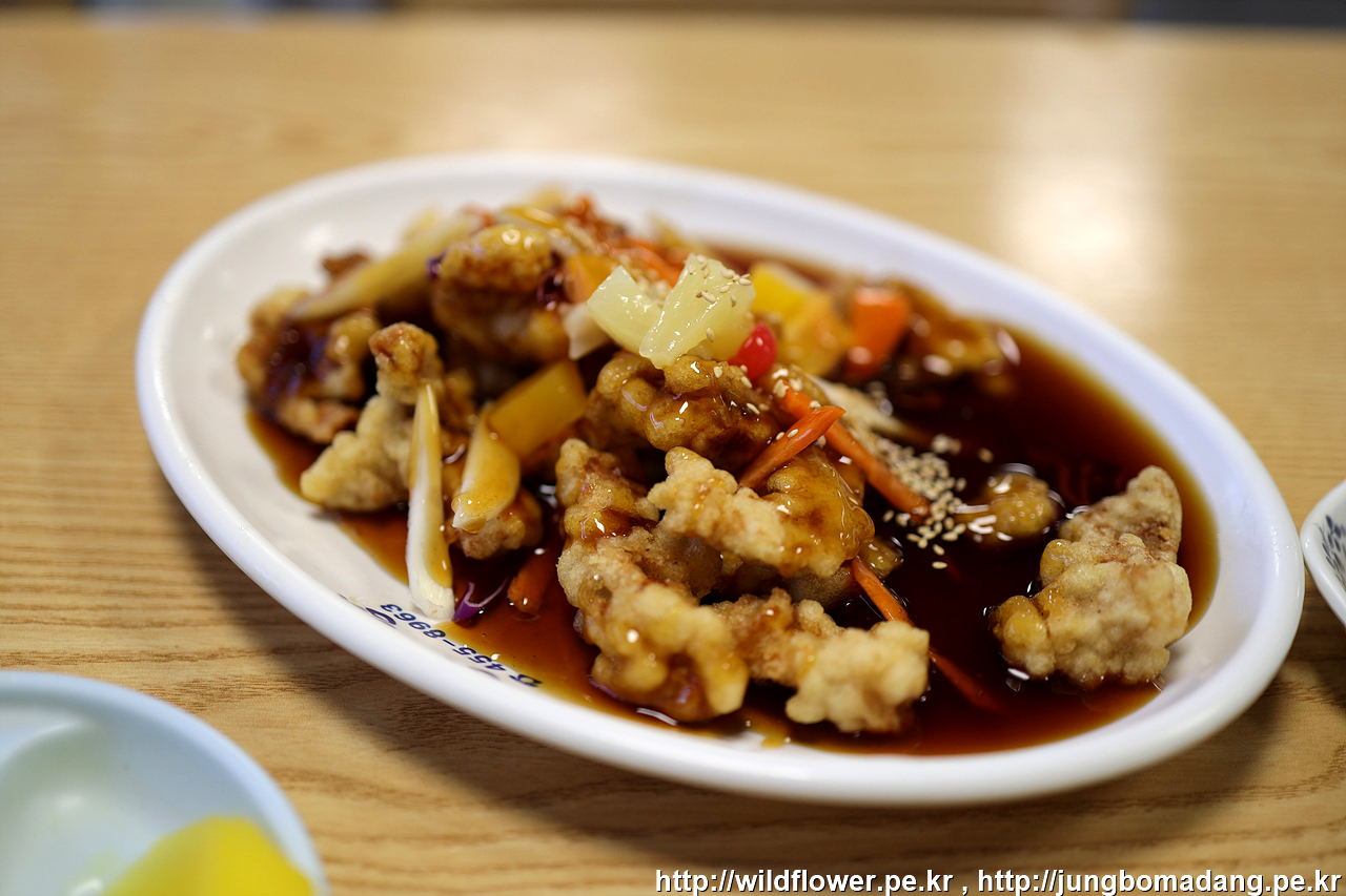 만두 헤치우고 간짜장 슥슥 삭삭 비비고 한 젓가락 하려니 탕수육이 등장합니다.
