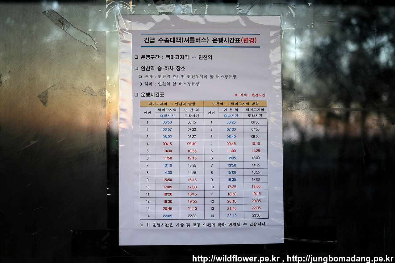 연천역 - 백마고지역 무료 셔틀버스 시간표 2 : 위에 종이로 프린트된 버전과 시간 동일합니다.