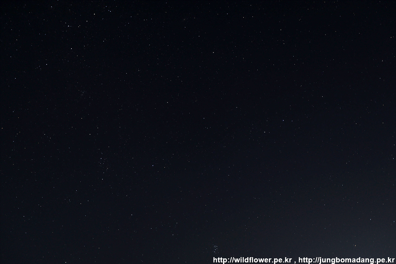 은하수 방향으로 조준해서 담았는 데, 희미하게 보일 듯 말 듯. 은하수 촬용 조건인 1.맑은날, 2.달이 가장 작은날, 3.어두운 곳을 찾아 왔는 데, 하필이면 은하수 보이는 방향으로 서울시가 자리 잡고 있어, 빛 간섭으로 인해 은하수 촬영은 부적절한 위치에서 이러고 있네요. ㅠㅜ