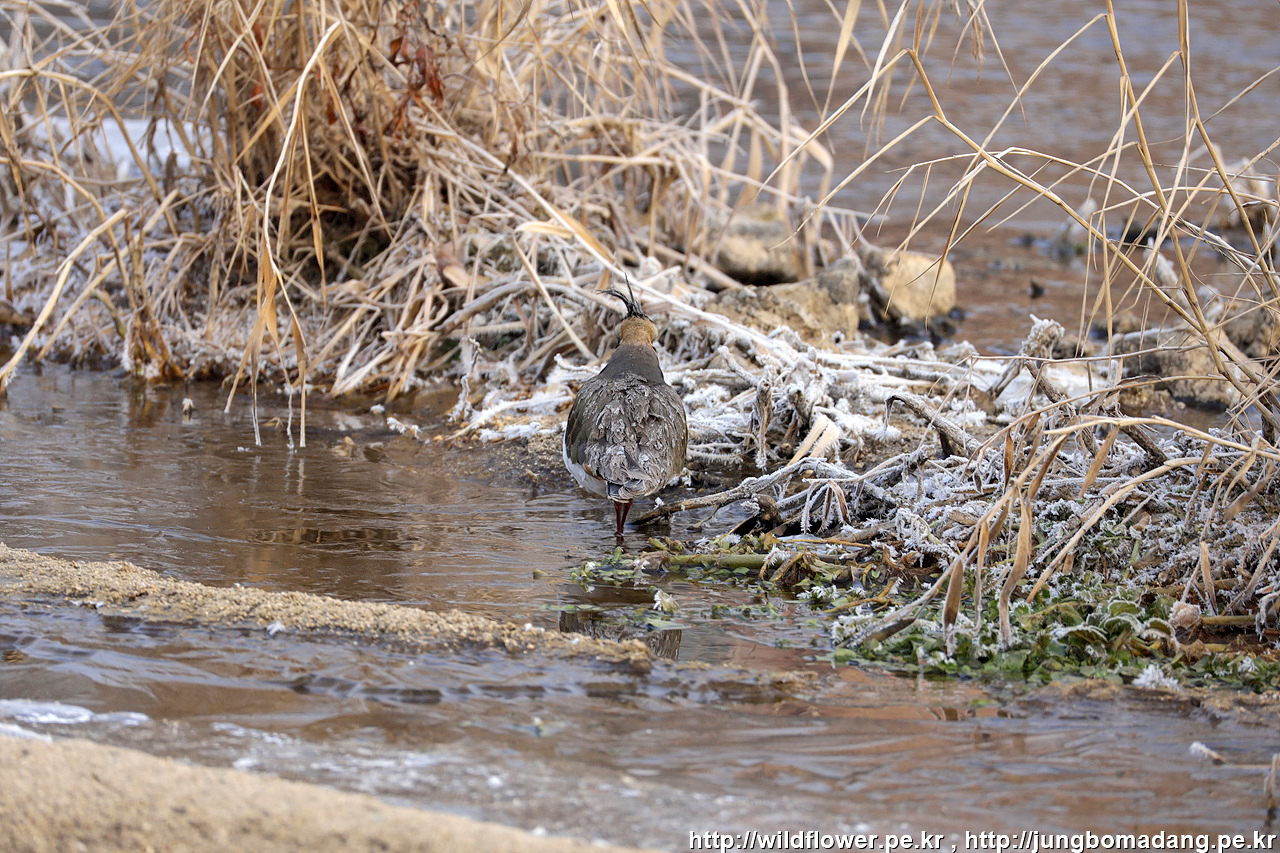 댕기물떼새 - 수컷 겨울깃. 날개나 머리깃에 서리가 맺힌 걸 보니 보기에 추워 보였습니다.