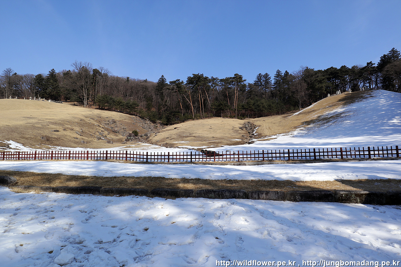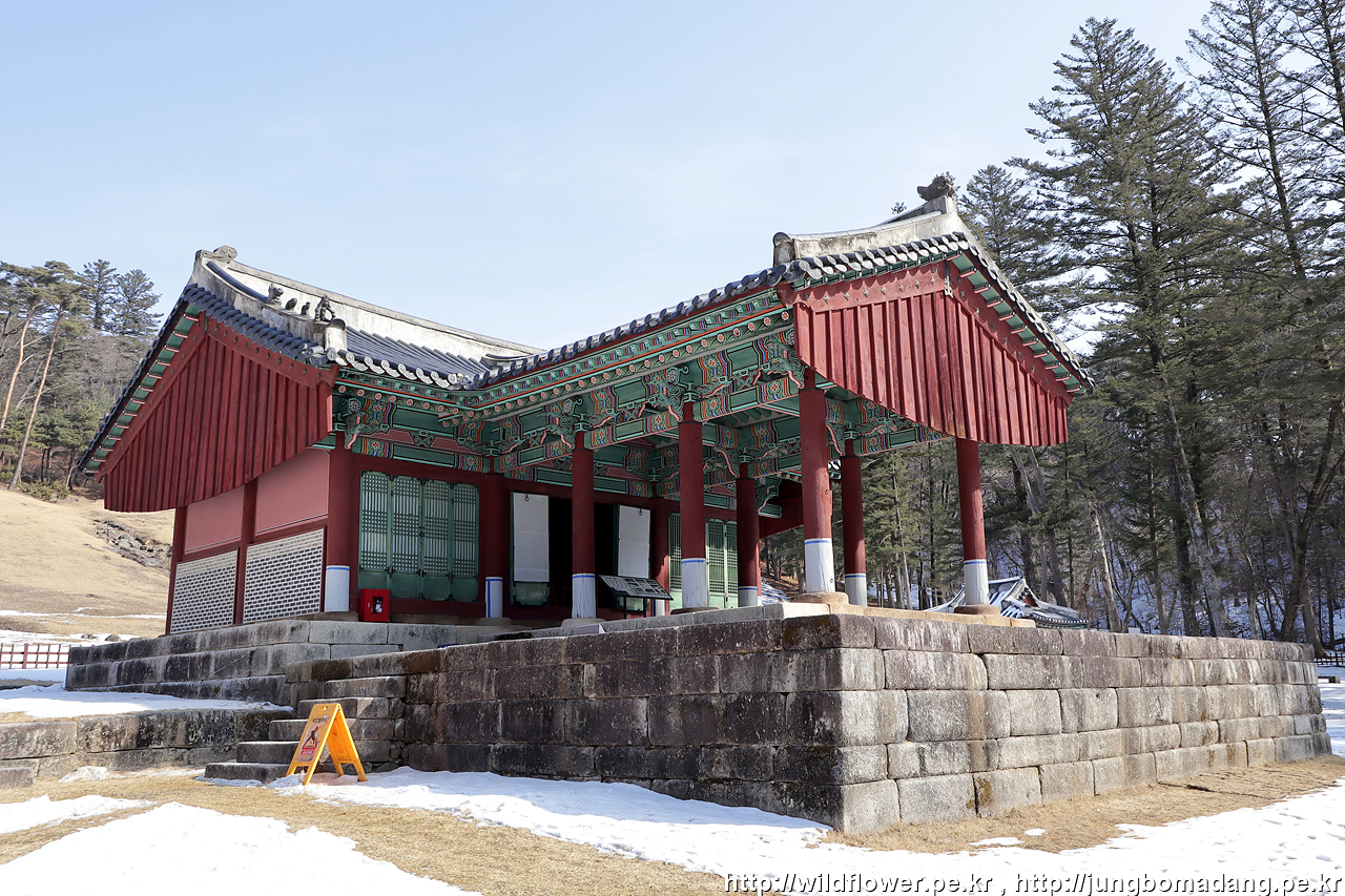 좌측이 세조의 능이고, 우측이 정희왕후의 능입니다. 가운데 정자각이 있고, 왼편에 수라간, 오른편 뒷쪽은 비각, 앞쪽은 수복방입니다.