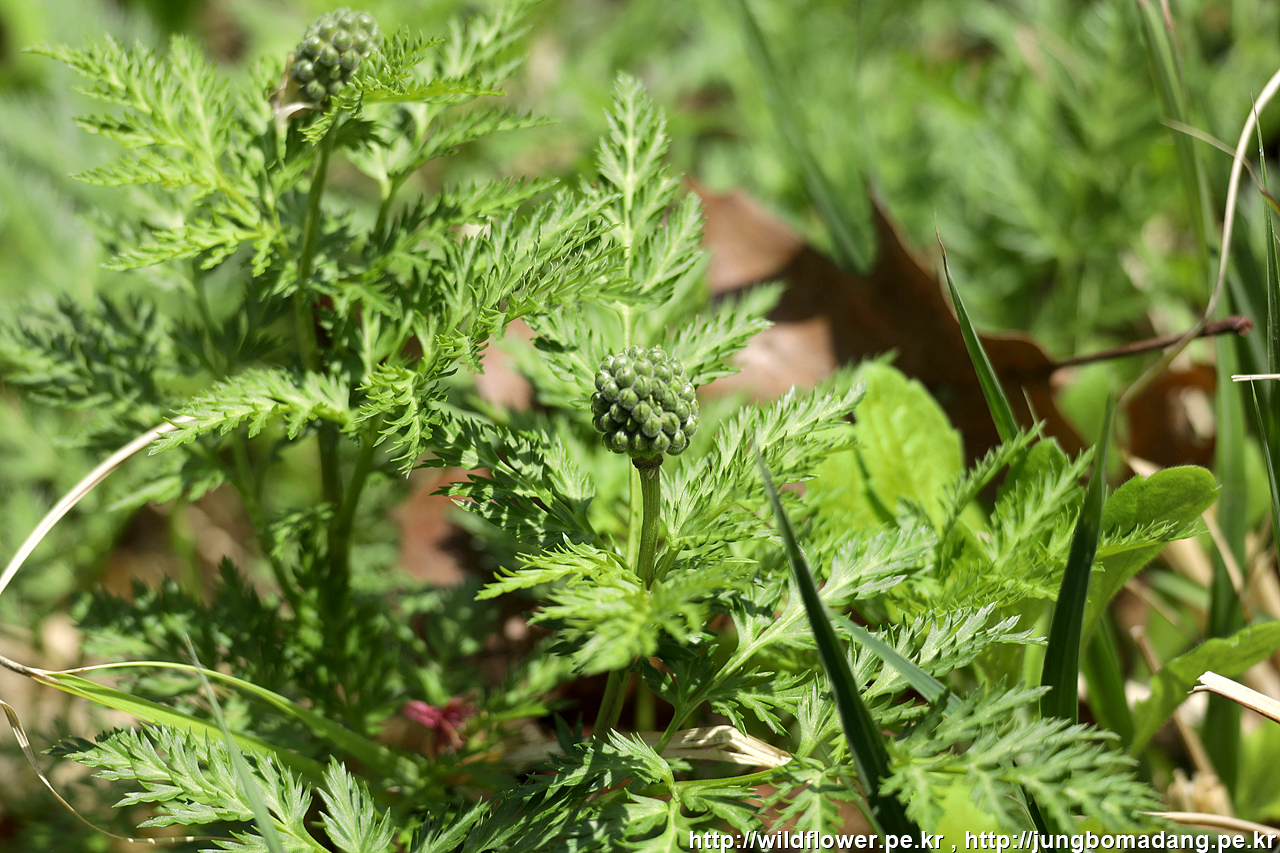 복수초 - 꽃이 지고 열매가 맺힌 모습입니다.