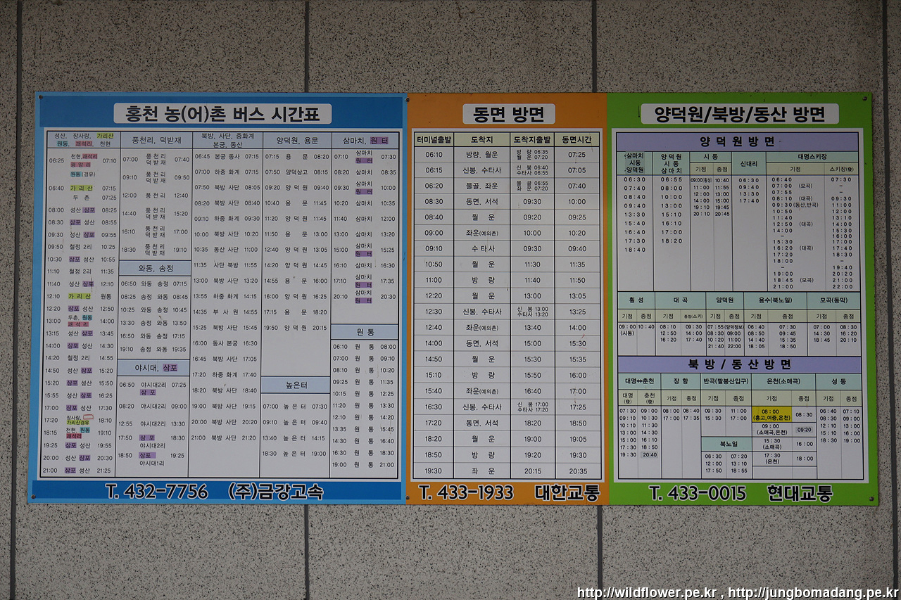 동서울 6시 15분 출발 버스는 8시 5분 홍천 도착, 12300원