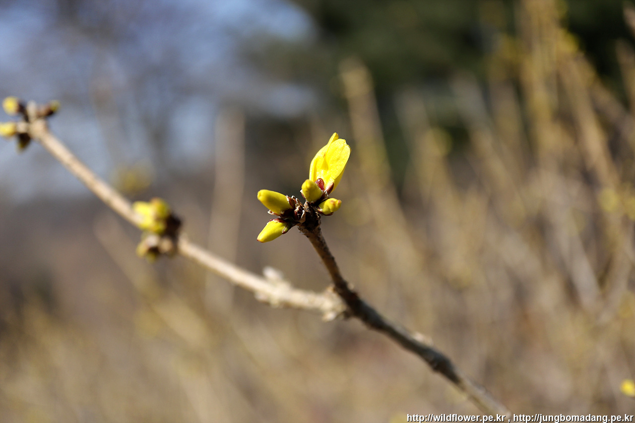 산수유 - 꽃말이 영원불명이라는 거창한 의미가 있습니다. 꽃이 피우려고 열심히 노력중이네요.