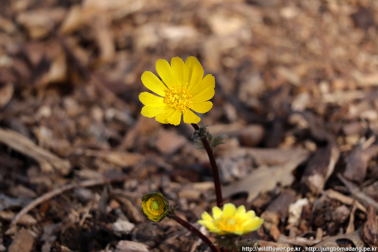 복수초 - 꽃이름이 복과 장수를 의미하는 데, 꽃말은 영원한 행복, 슬픈 추억이라는 뜻을 가지고 있습니다.