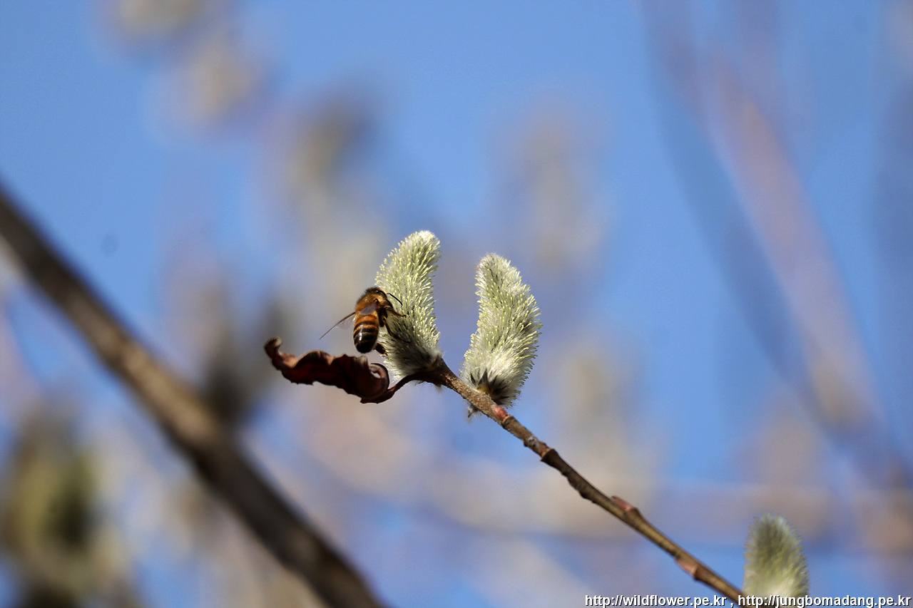 갯버들 - 꿀벌이 꽃이 피었나 안피었나 열심히 조사중입니다.