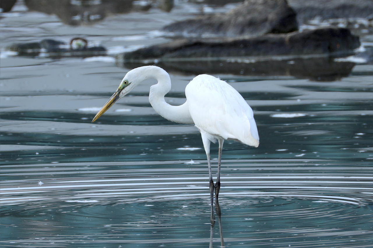 중대백로 - 크롭 사진입니다. 붕장어를 하나 잡아서 그대로 넘기네요.
