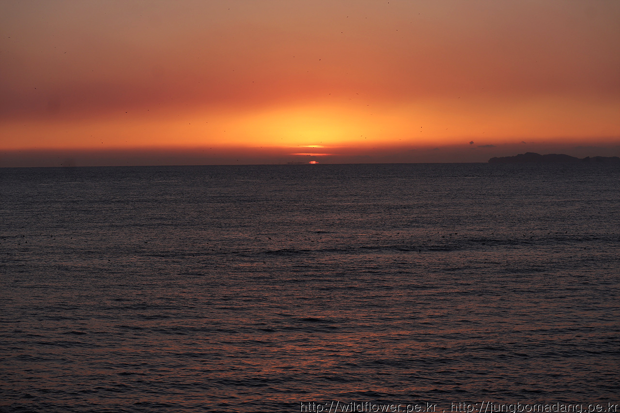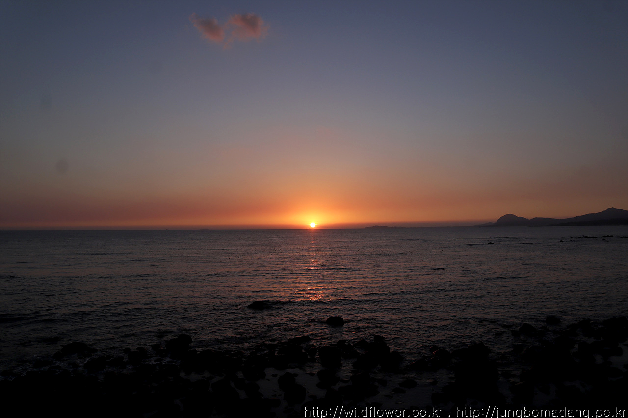 바닷가에 도착할 땐 중간에 햇님이 지고 말았네요. ㅜ
