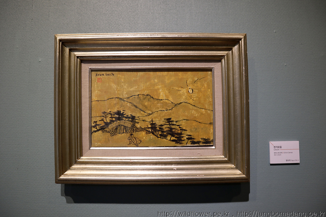 한가로움-변시지. 이 작품을 보다 보니 문득 이중섭이 생각나네요. 변시지 선생님의 그림에는 공통적으로 한남자와 추가로 말 한마리가 등장하는 데 그림에서 슬픔이 뭍어 나오는 듯 합니다.