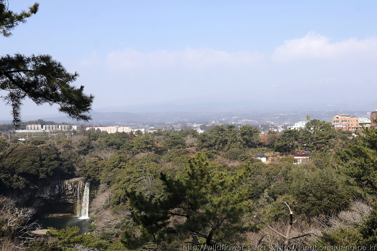 천지연폭포(좌)와 한라산(우) - 한라산은 잘 안보이죠?