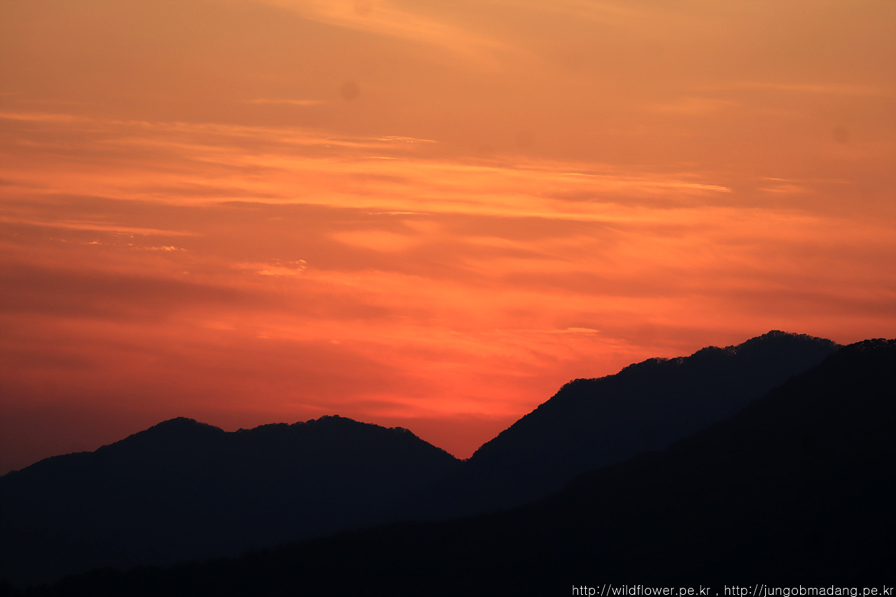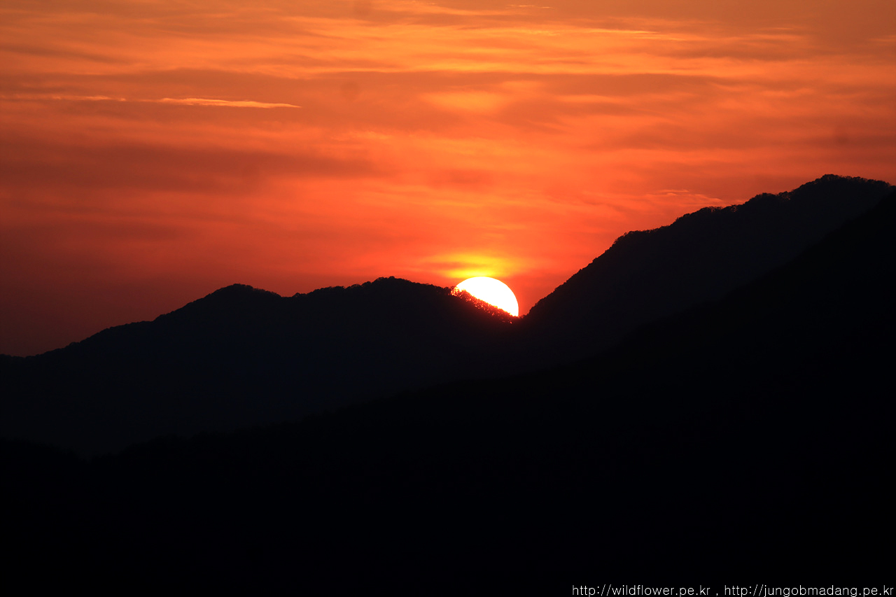 일몰 끝. 햇님이 산이든 수평선이든 걸칠 때부터 2분이 지나면 햇님이 사라집니다. 그러니 어물쩡 하면 안되고 열심히 봐야하고 담으실 분은 담아야 합니다.