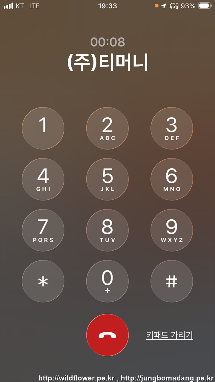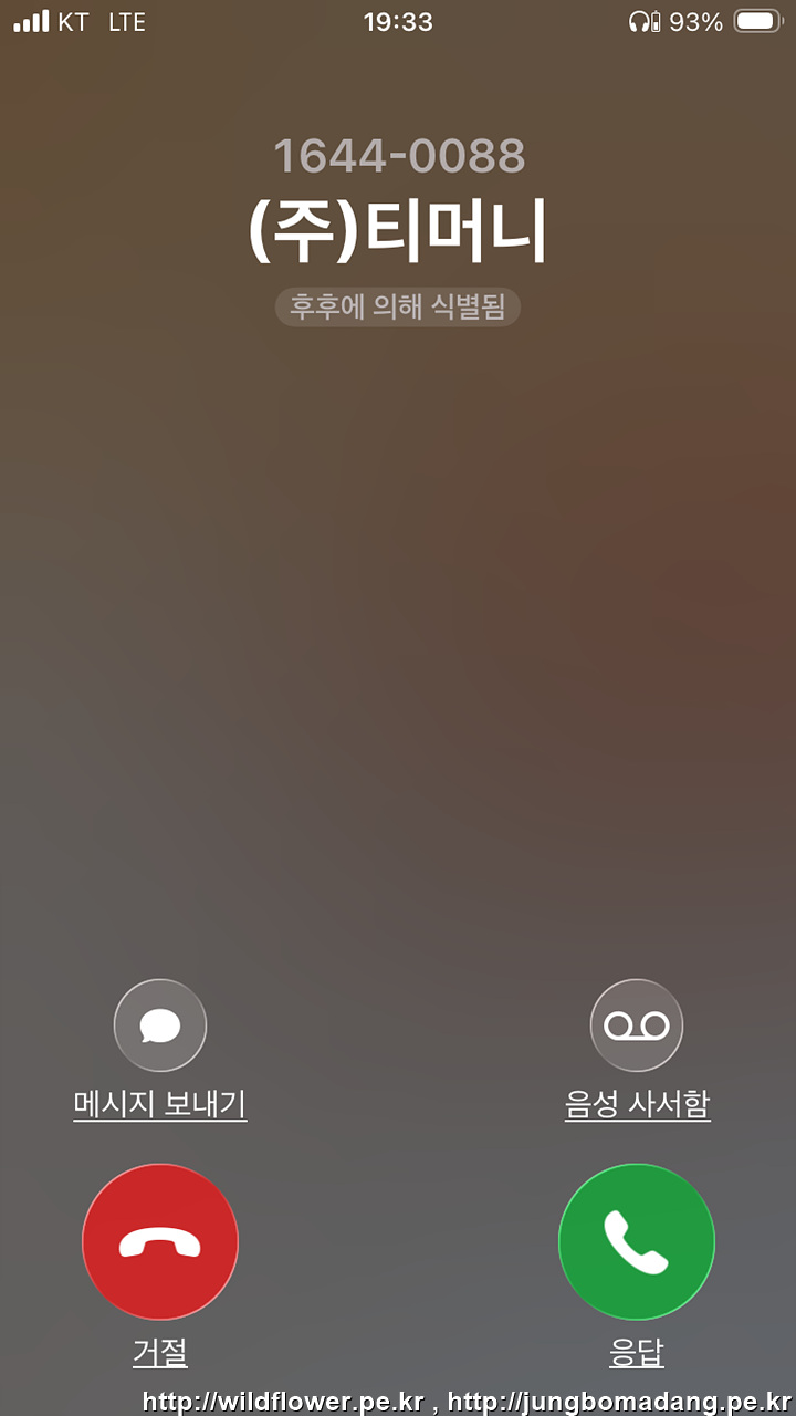 21. (주)티머니에서 전화가 옵니다. 두근 두근... 응답(통화 버튼)을 선택합니다.