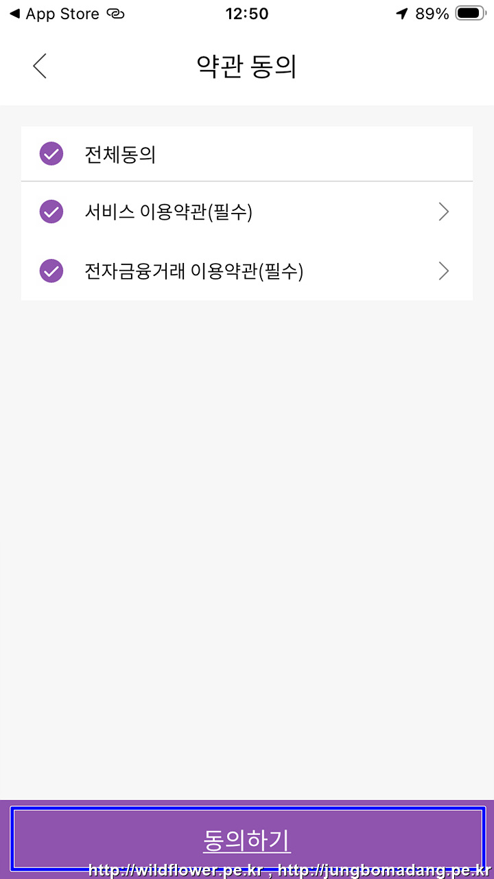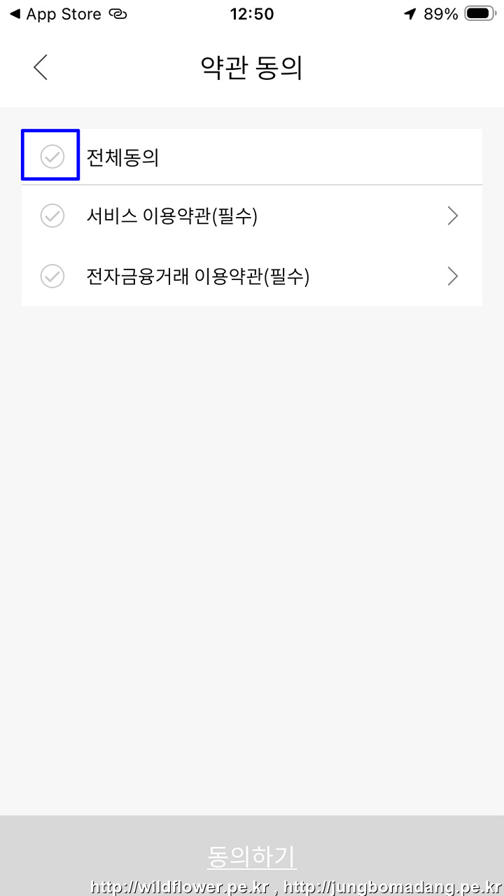 8. '동의하기'를 선택하여 약관 동의합니다.