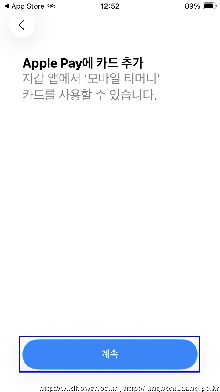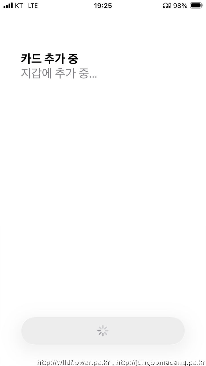 12. 카드 추가 중 - 지갑에 추가 중... 으로 나오는 데 기다립니다.