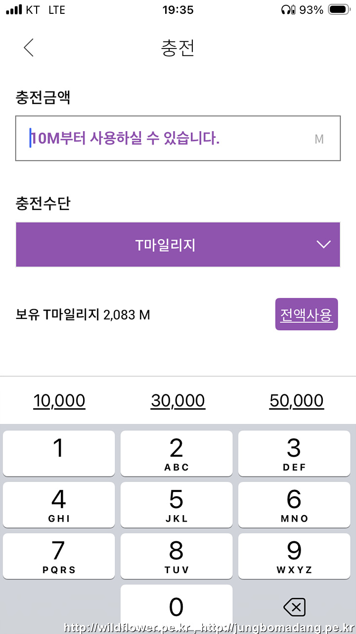 참고로 T마일리지를 통한 충전 방법도 안내합니다.