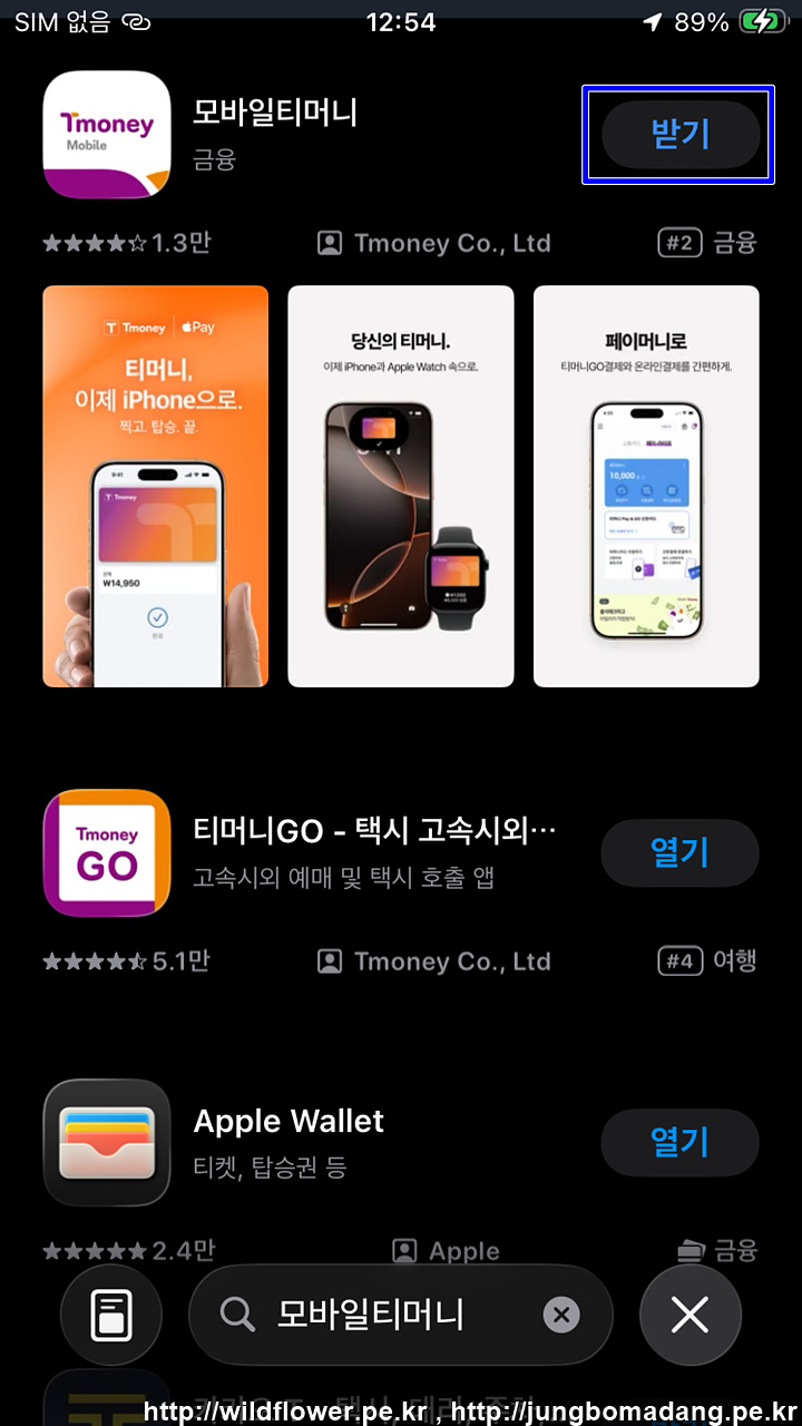 1. 앱스토어에서 모바일티머니를 검색 및 받기로 설치합니다.