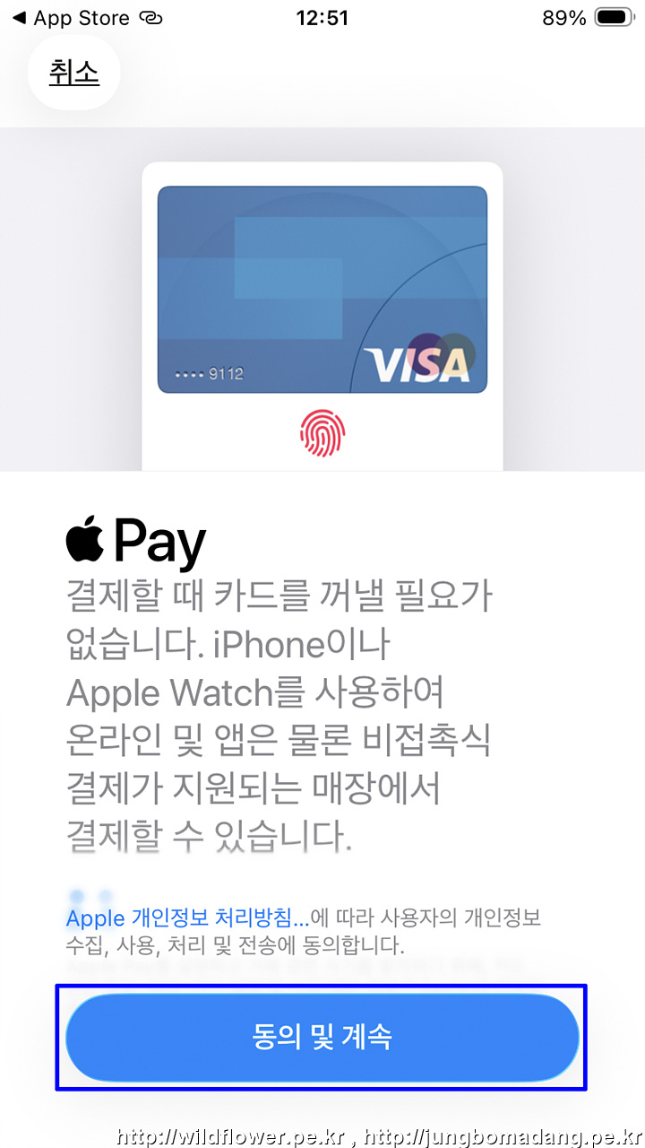 11. 카드 추가 중 - Apple Pay에 카드 설정 중... 이라고 나오는 데 기다립니다.