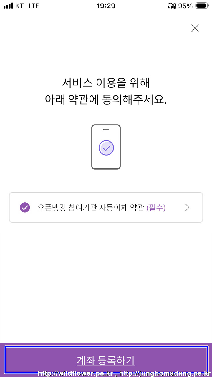 23. '등록완료'를 선택합니다. 계좌 등록 및 본인인증 과정이 끝났습니다.