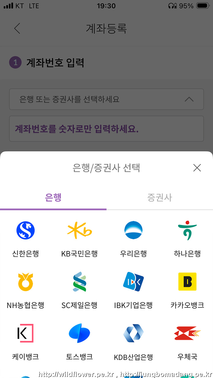 18. 등록할 계좌 은행을 선택합니다.