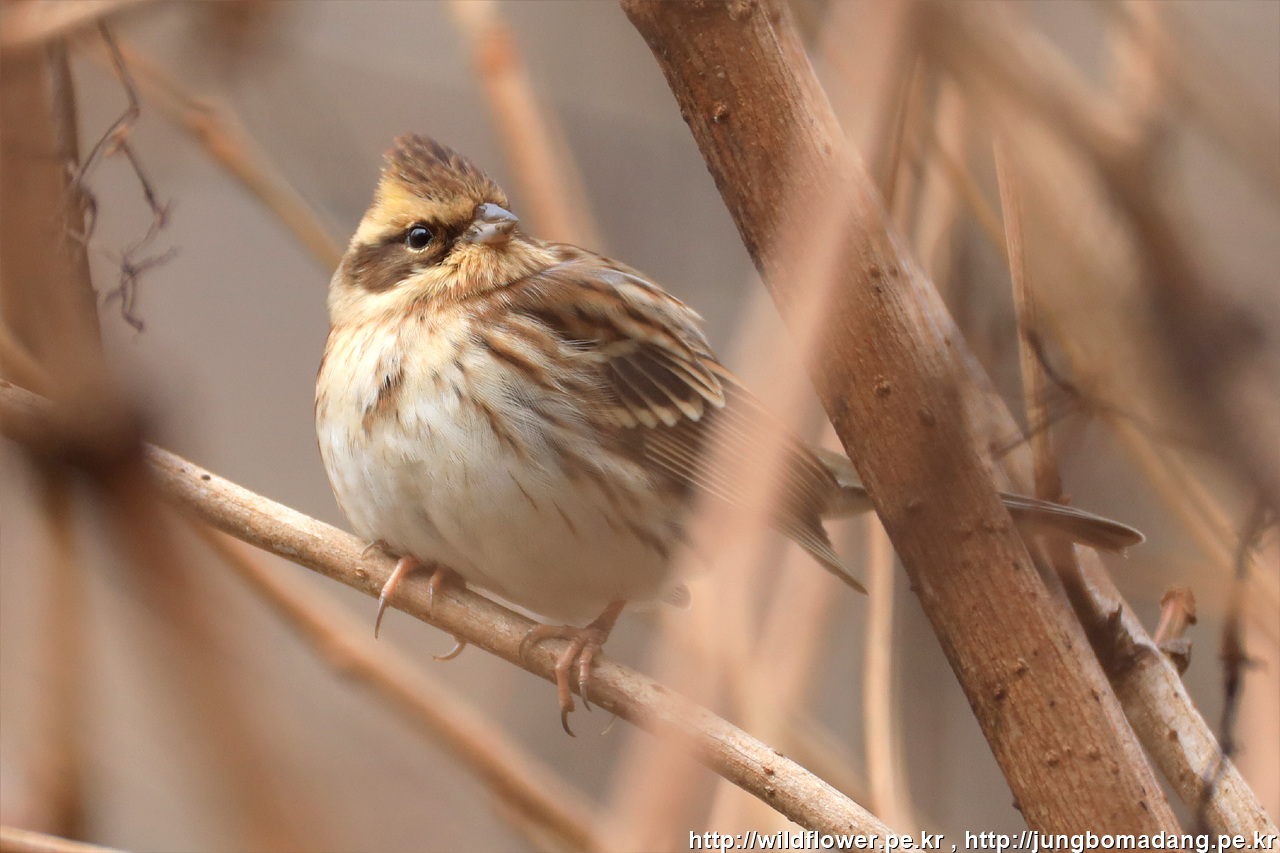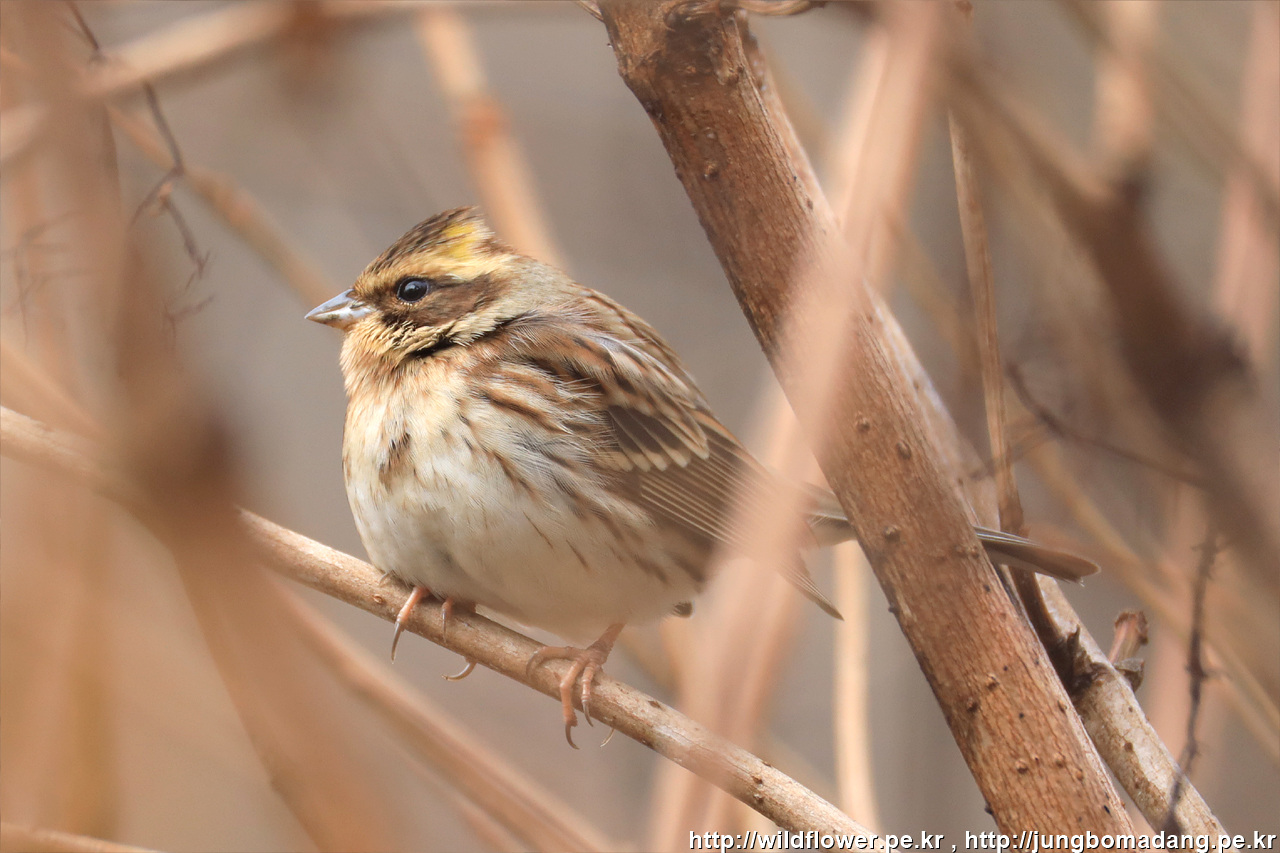 노랑턱멧새 - 암컷. 크롭 사진입니다.