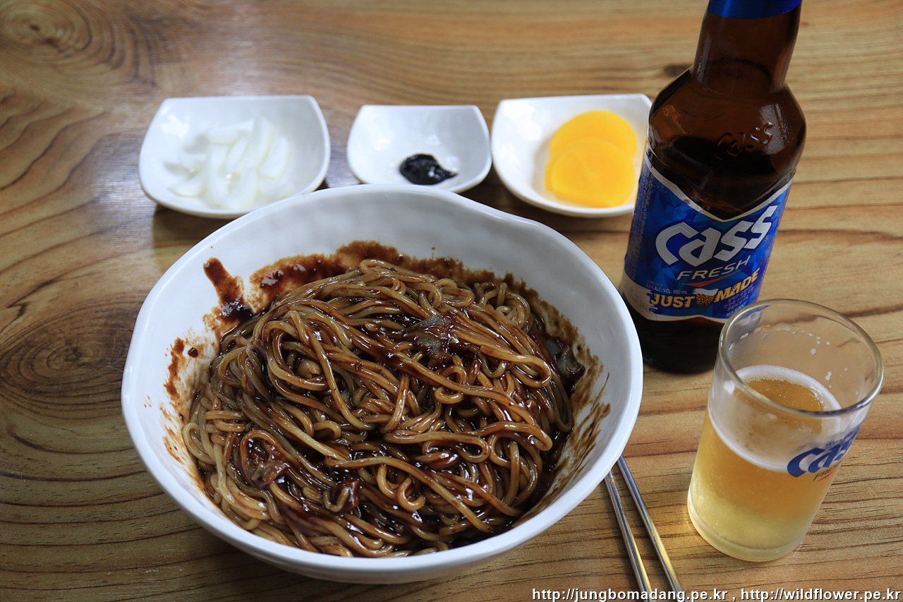 시장기를 달래러 현포에 도착 하자 마자 이번엔 중식을 간단히 요기를 하려합니다. 간짜장은 없어서 짜장면 곱배기를 맥주와 함께 주문. 그리고 안주로 깐풍기 소짜리도 하나 주문합니다.