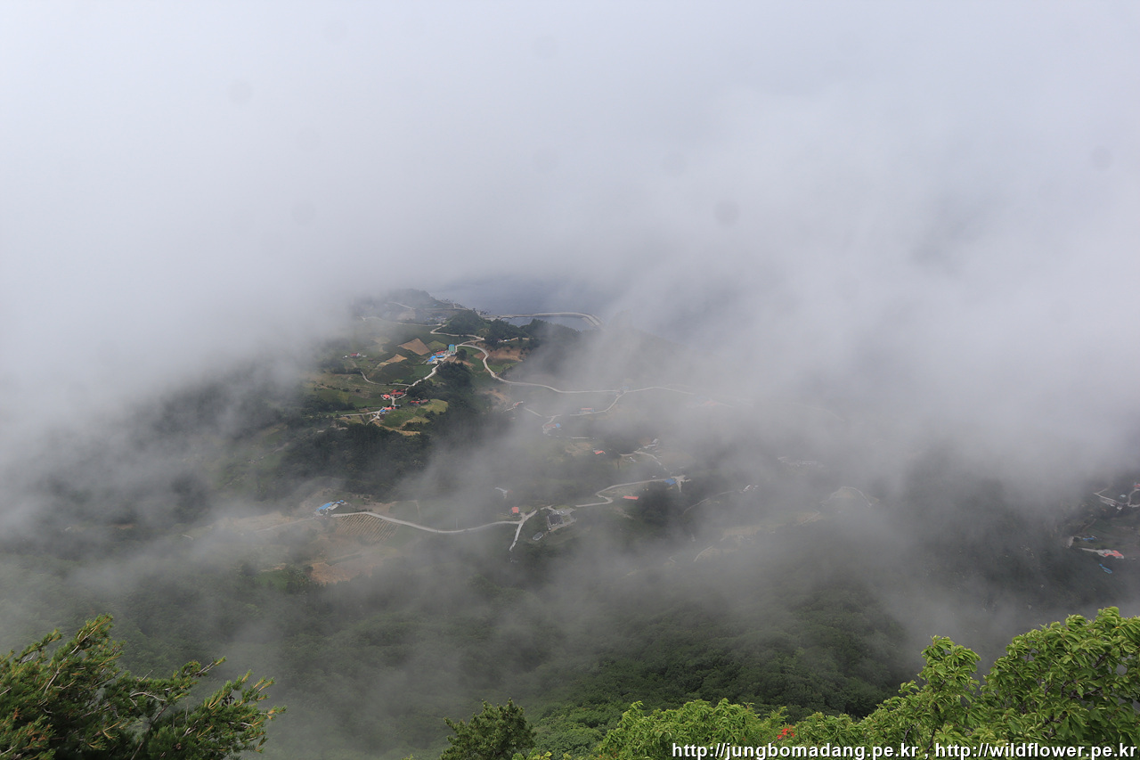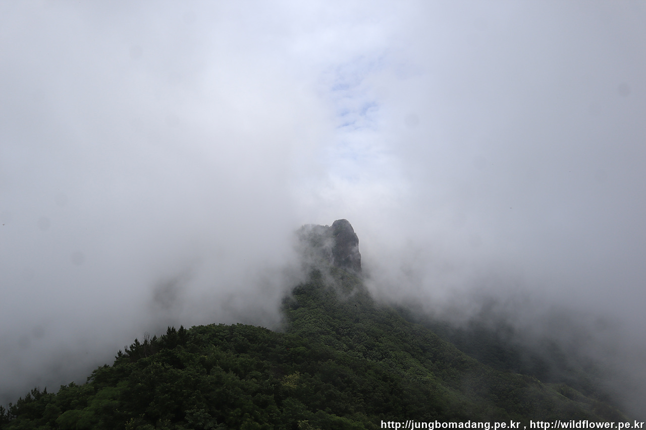 깃대봉에 오르니 해무가 막 몰려오고 있네요. 서둘러서 담아 봅니다.