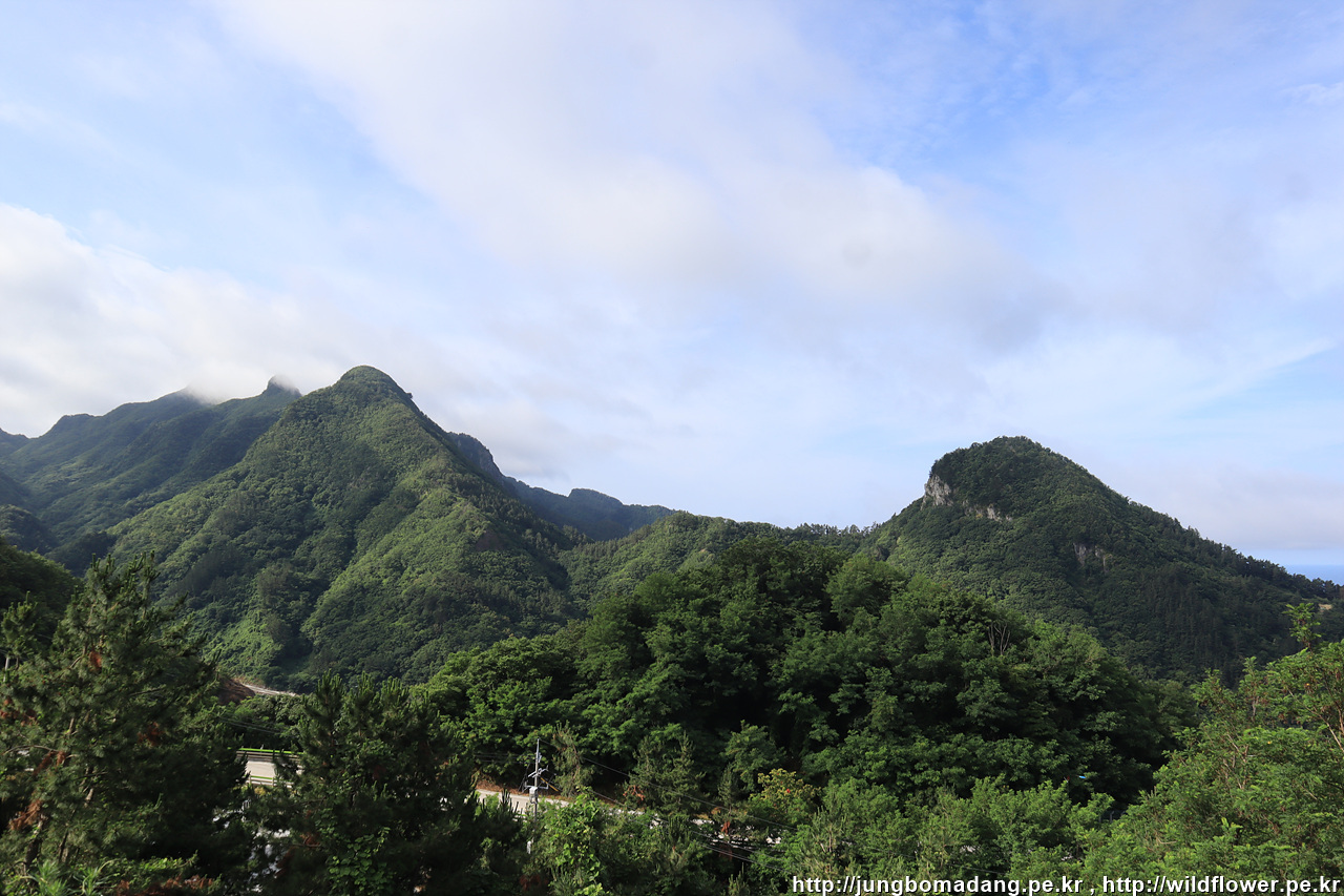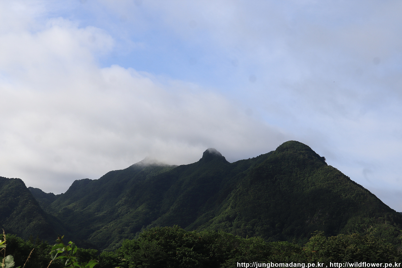 우측 뾰족부분은 성인봉, 좌측 완만한 언덕은 내수전