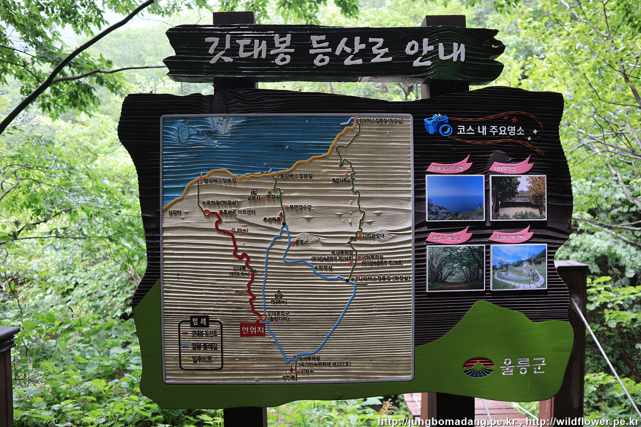 깃대봉 등산로 안내 - 어떻게 갈까? 깃대봉 찍고 내려올까? 아님 깃대봉 지나서 울릉천국으로 하산? 두번째 안으로 진행하기로 합니다.